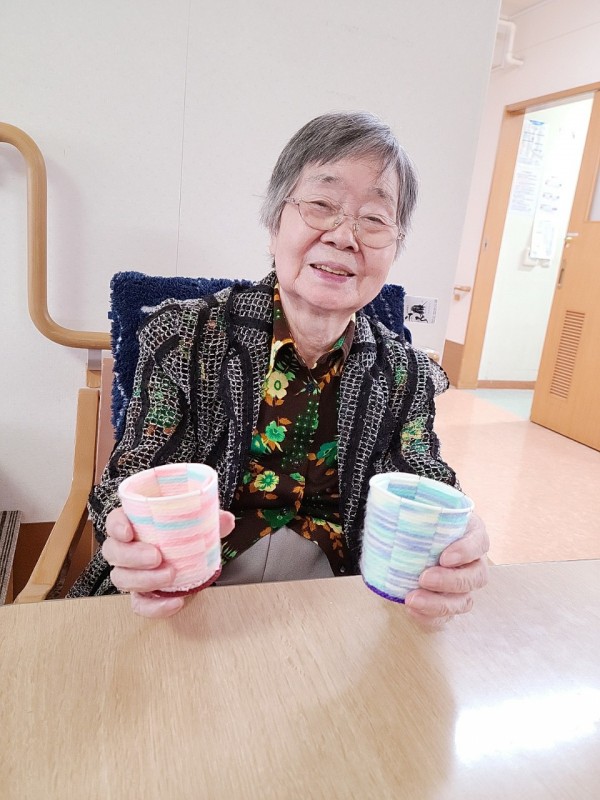 こちらは牛乳パックを使ってホーム長が作った小物入れです!