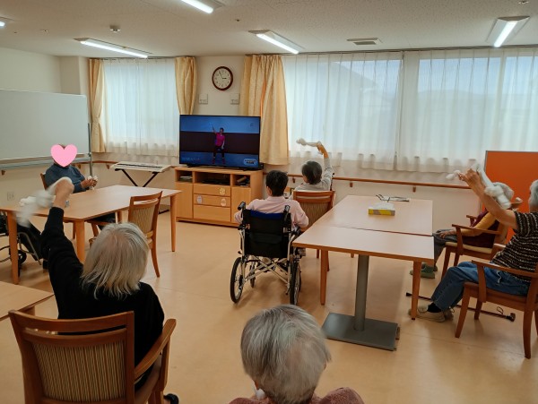 この日は、タオルを利用した軽い筋トレ「タオル体操」をおやつの時間前に行いました。