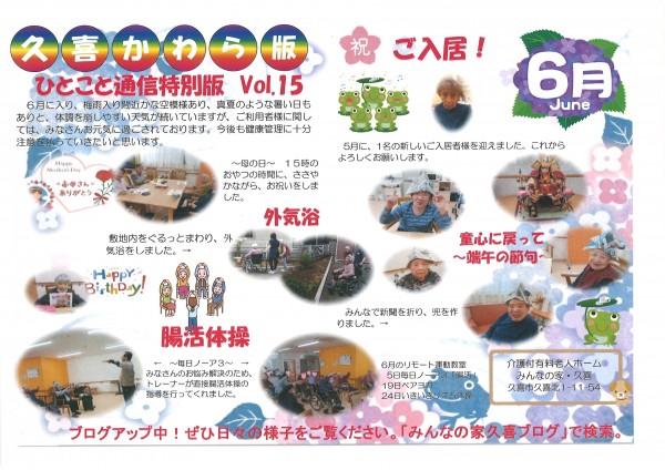 5月もは、端午の節句や母の日、体操に外気浴等、ご利用者様に楽しんでいただきました。