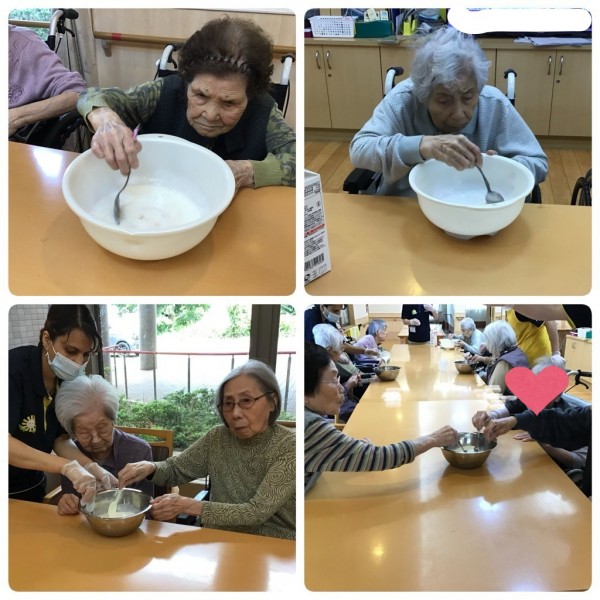 みんなの家大和田では、フルーチェを皆様に作っていただき、フラワーソープを男性利用者にプレゼントしました♡