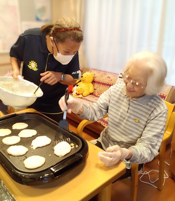 ホットプレートを使って 皆様でパンケーキを作りますヾ(*´∀`*)ノ