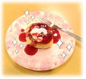 生クリームとイチゴソースをトッピングして
