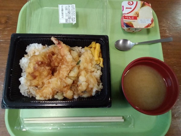 普段の食事もご利用者の皆様は美味しいと仰ってくださるのですが、どうせなら普段のメニューにはないようなものがいいだろうと、うどんの久兵衛屋の天丼を召し上がっていただくことにしました。