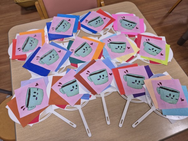 名札等々CAFEKUJIグッツは、チラシをモチーフに、ケアリーダーがすばらしいものを作成してくれました。