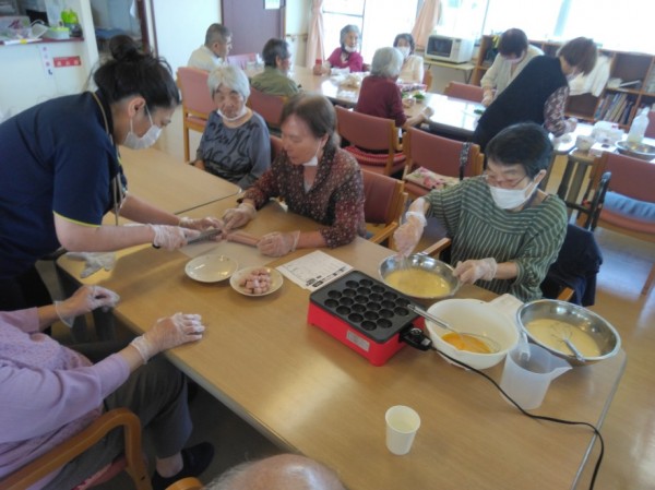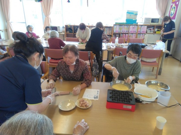 今月のおやつレク第3弾!!たこ焼きを作りました(#^^#)