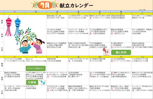 7月と言えば七夕ですね☆来月の行事食はどんな美味しいものが出てくるのでしょうか☆