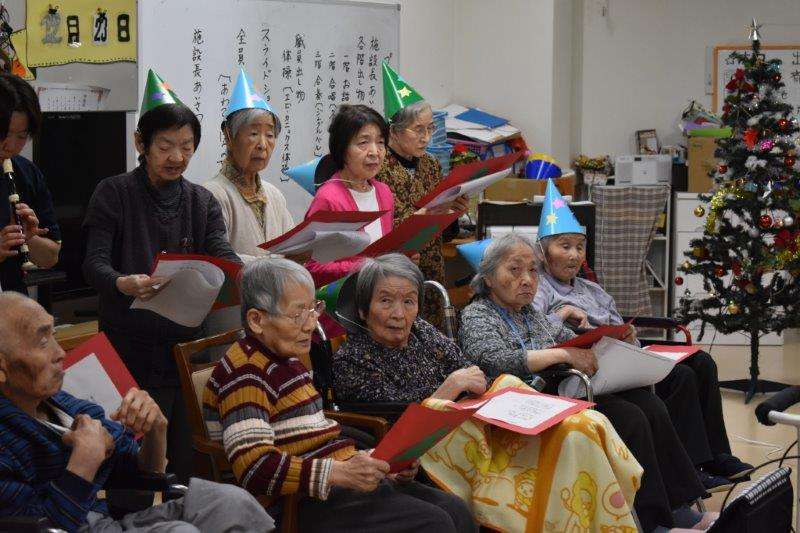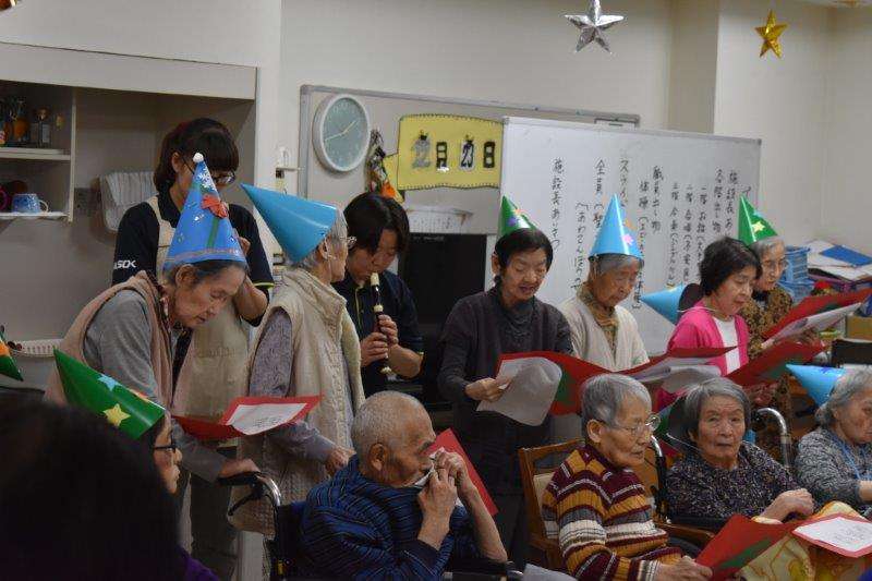 2階の出し物は職員のリコーダーの演奏にあわせてご入居者様が合唱をしてくださいました。