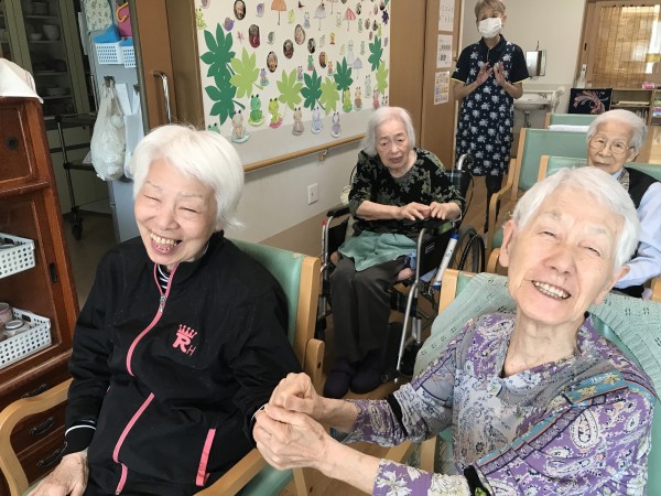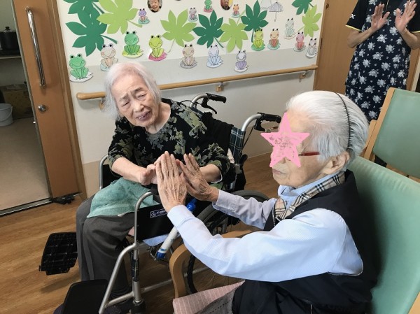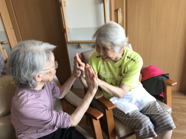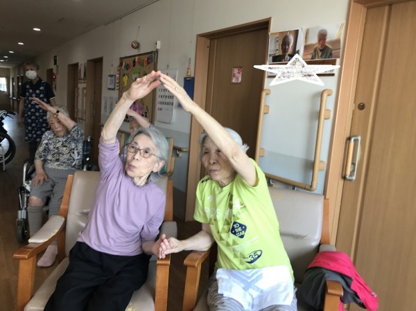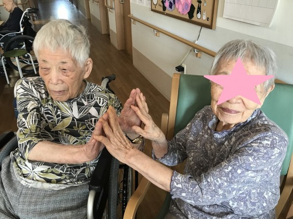 こんにちは! グループホームみんなの家・川崎野川南台です! 今回のリモート体操は「ペアヨガ」 椅子をいつもより少し近づけて、隣の方と手を合わせたり、 温もりを感じて「ほっこり笑顔」が撮れました(^^♪
