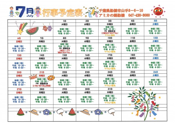 7月のイベントカレンダーとご当地メニュー