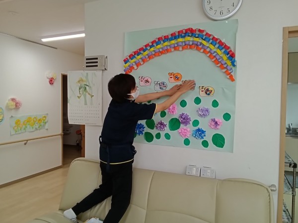 ご入居者様たちが折り紙を貼ってくださいました☺