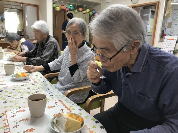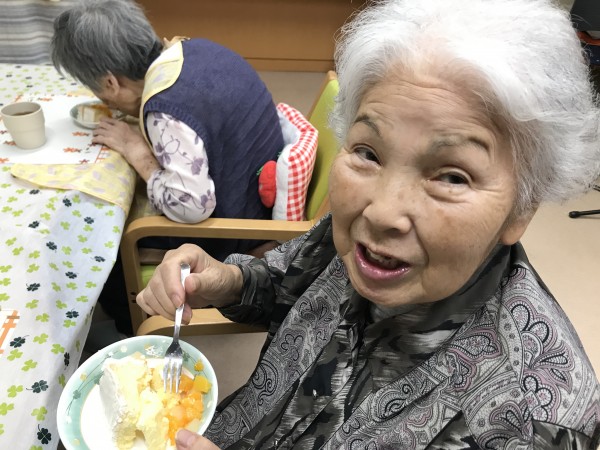 そして第二部は、職員の手作りケーキでお祝いしました(≧▽≦) 皆さん美味しい(^o^)/と召し上がっては「もっと食べたいわ」と仰っていました( ^)o(^ )
