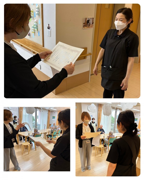 職員一同、心からの感謝とこれからも一緒にご入居者様をケアしていきたいと強く思う表彰の時間となりました。