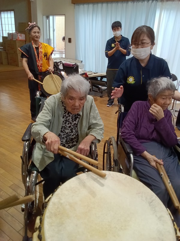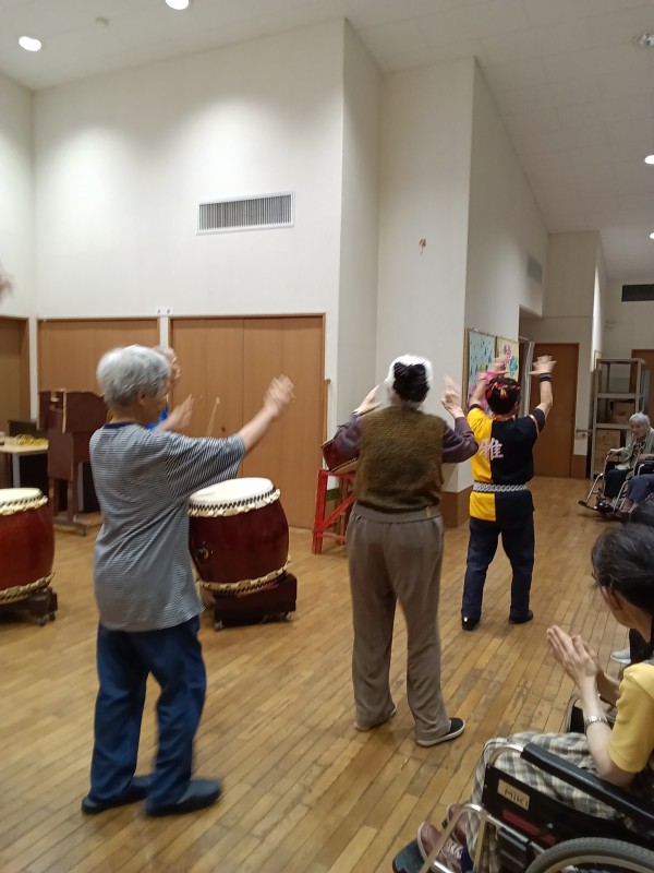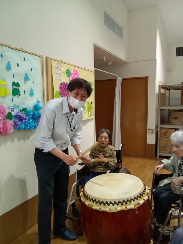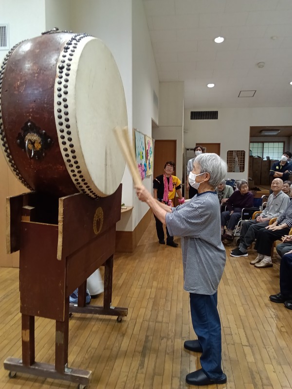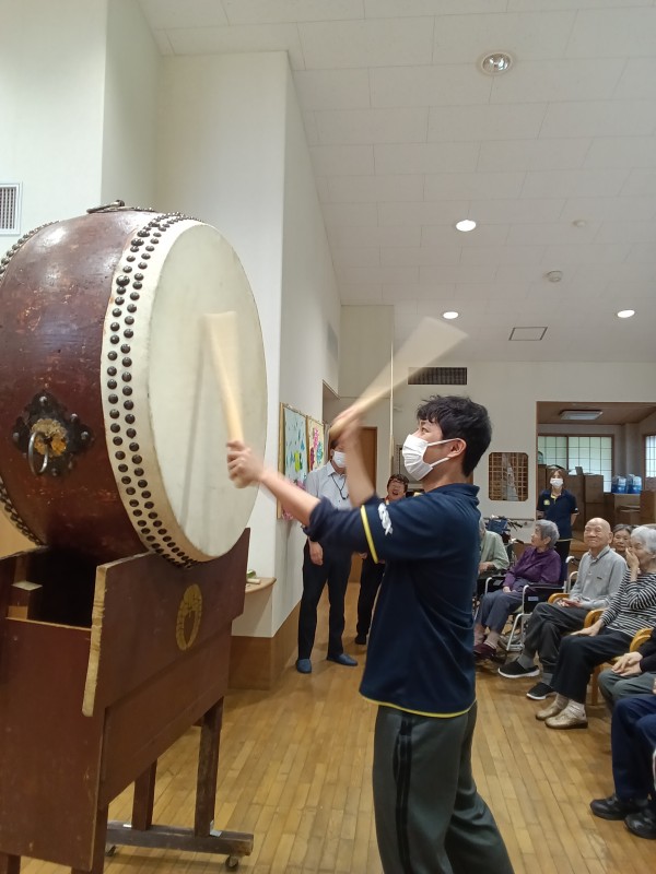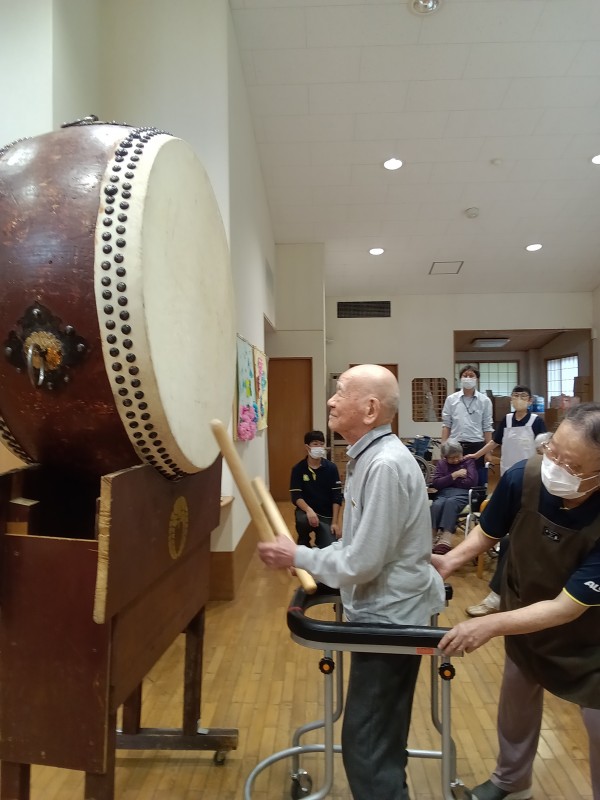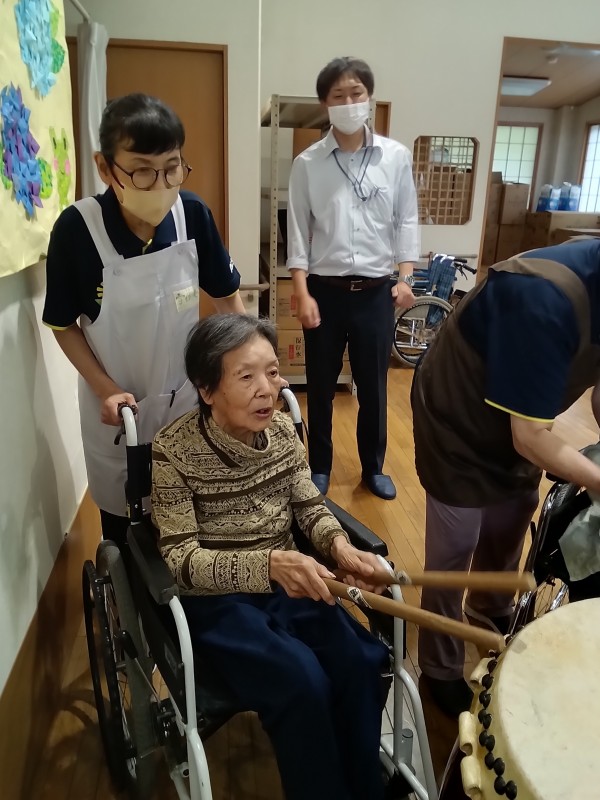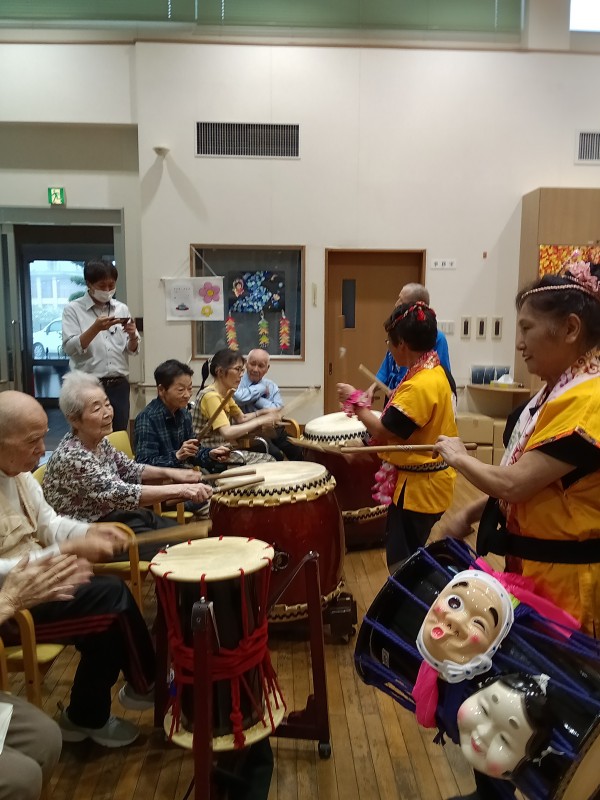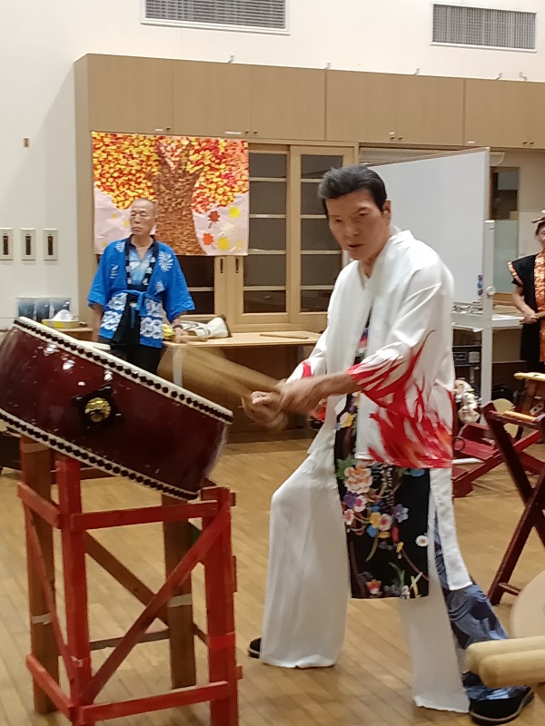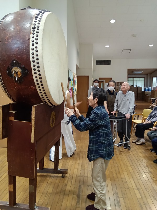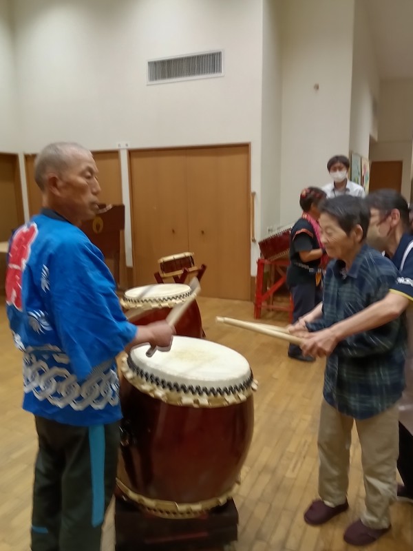 天候が悪い中地域の方々も参加頂き、それぞれに太鼓を叩いていただいたり