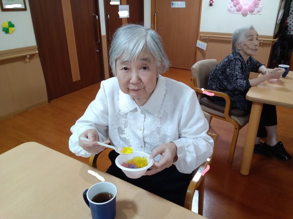 今回は、おやつの時間からゼリーを召し上がっている様子をお届けいたします。