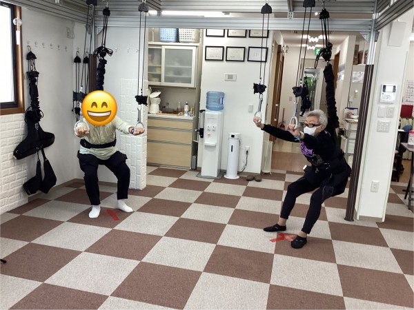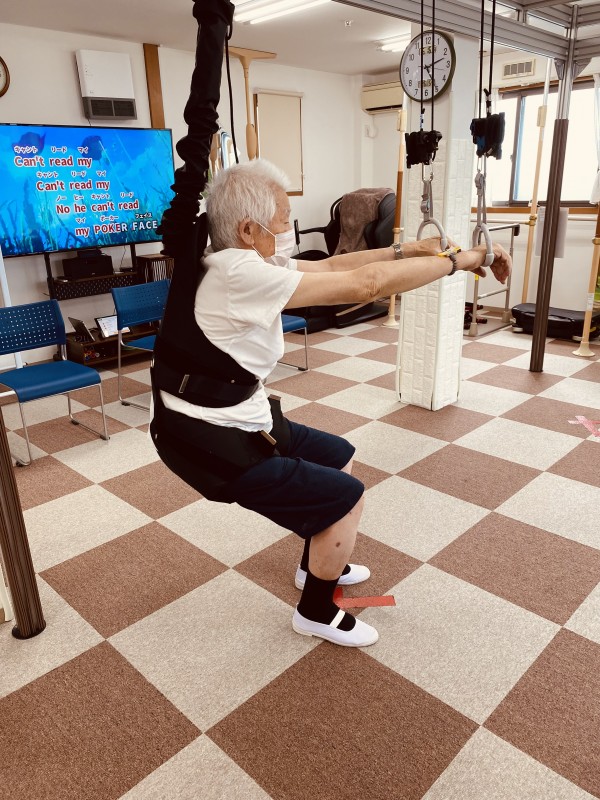 皆さん色々な運動の途中で、椅子に座るようにスペースワンダーに