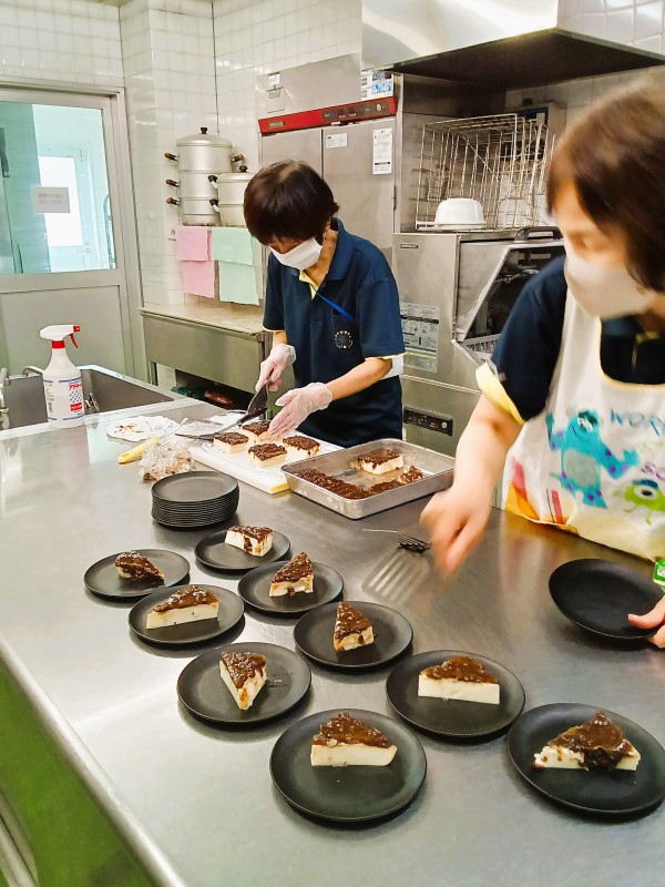 茅の輪くぐりの後は、スタッフ手作りの水無月寒天とほうじ茶をお召し上がりいただきました