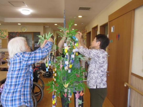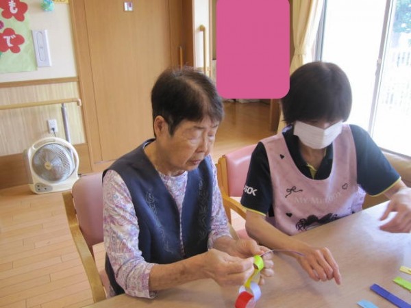7月7日七夕に向けて皆様と一緒にワイワイ♪と七夕飾りを制作しています(^^♪