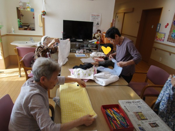 お盆を拭いて下さったり、山のような洗濯物をたたんで下さったりとスタッフは助かっています(*^^*)
