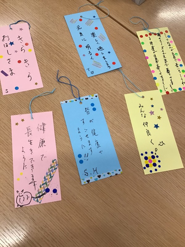 お次は七夕といったら短冊!!ということでご利用者様方にお願い事を書いて頂きました(*^^*)