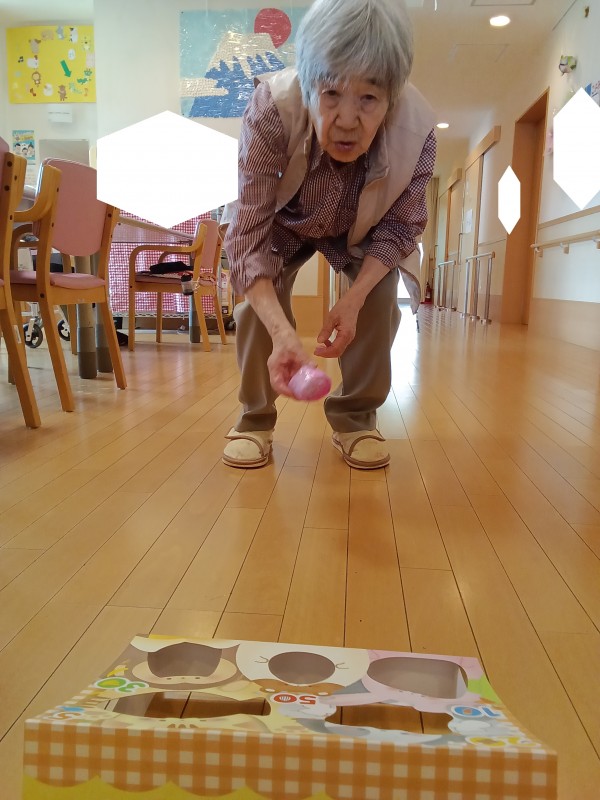 球を持ち、穴を狙って張り切って投げ始めます。 点数がありますので、高得点を狙ってハラハラドキドキ。