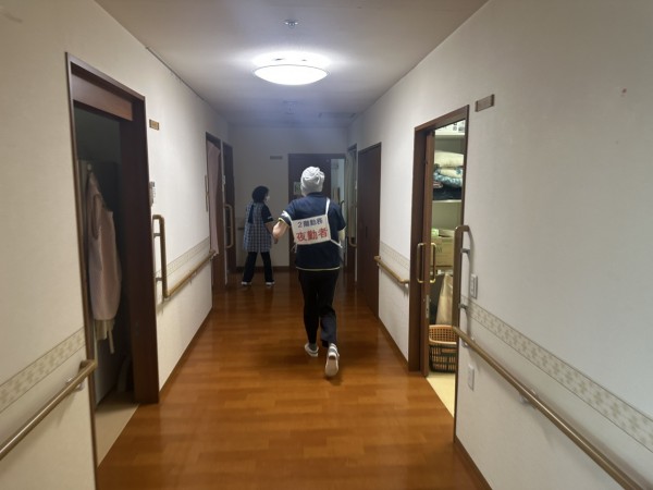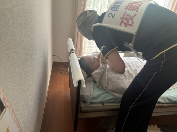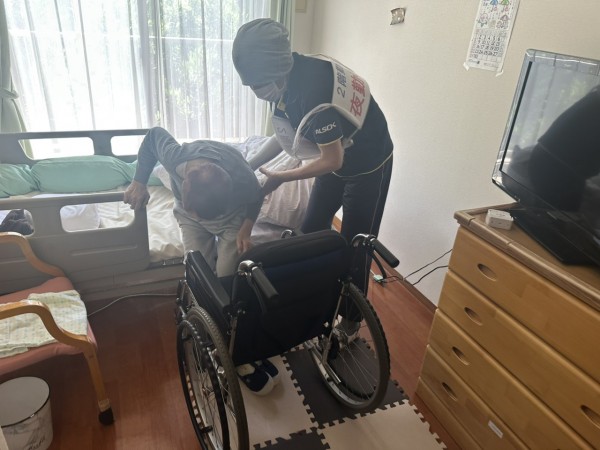 夜間想定ですので当然利用者様は深い眠りに入っており、実際はもっと歩行不安定や思うように車いすへ移乗も大変かと思います。