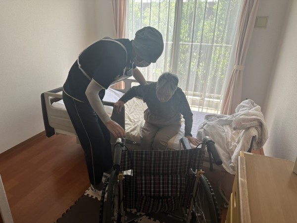 自力歩行が出来る利用者様ほとんどいらっしゃらず、室内からの移動になってしまいます。