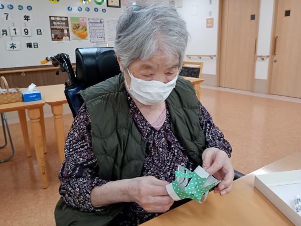 みなさんと短冊に書く願い事を考えながら作成(∩´∀`)∩