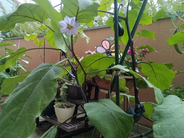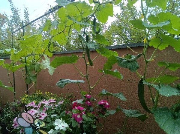 暑さでベランダの野菜や花も疲れ気味です(+_+)