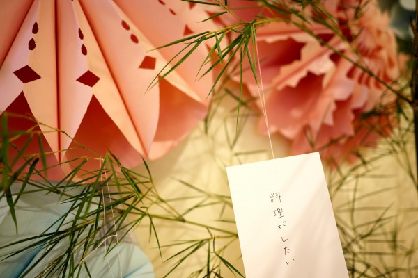 七夕に向けて短冊を書いてもらっています。