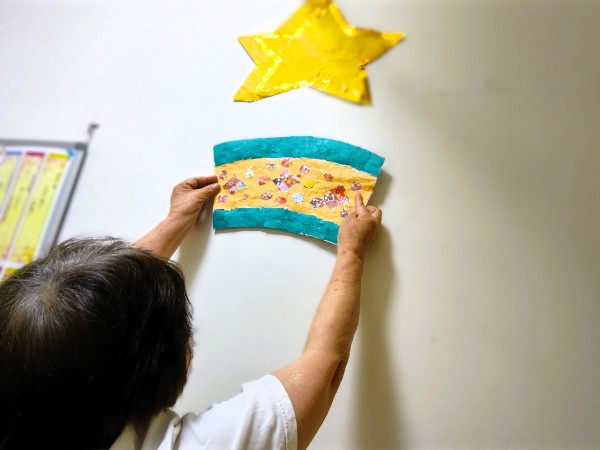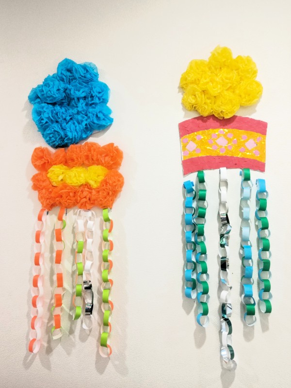その後は月初に作った壁面工作の作品と新たに作ったお花等で