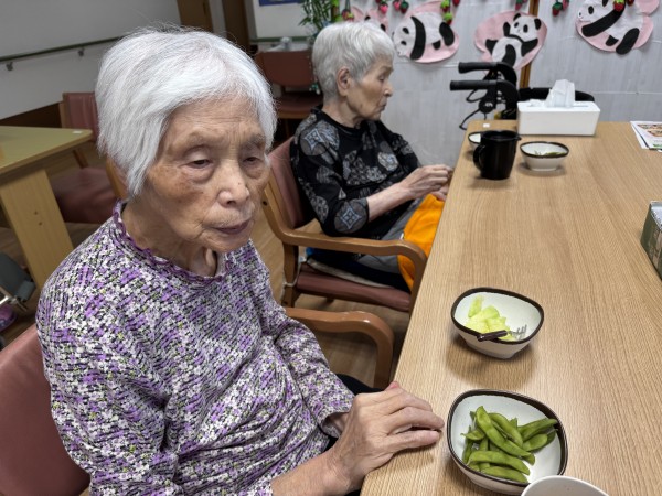 この日のおやつは茹で枝豆にメロン。生ハムメロンではないですがありそうな組み合わせ。それにしても豪華です!!