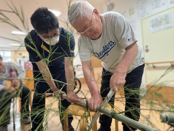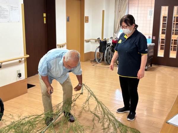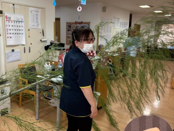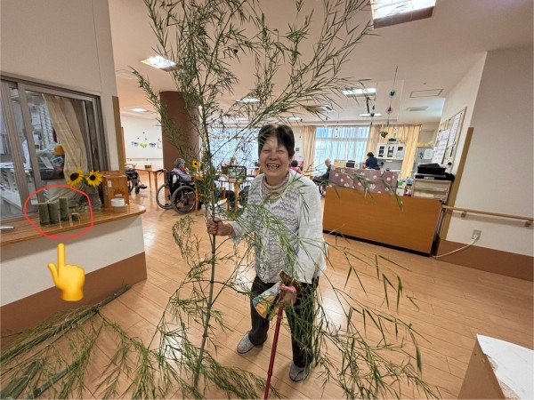朝、職員が出勤すると玄関に2本の巨大な笹が!