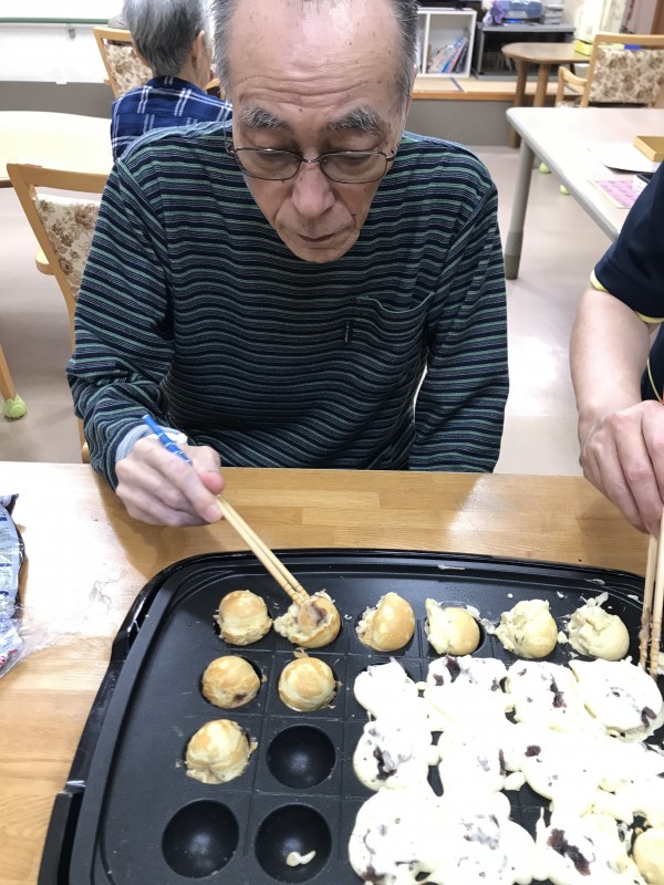 先日のおやつにタコ焼き器でホットケーキとあんこでたこ焼きみたいな、あんこ焼きを作りました(^○^)