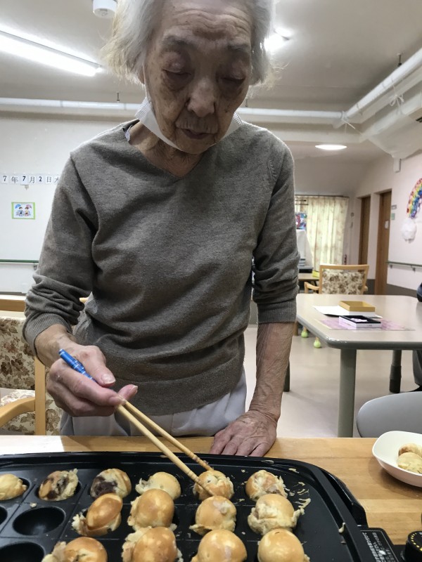 皆様にも焼くのをお手伝いして頂き、上手くまん丸に出来るかな?