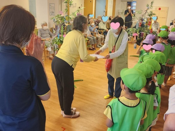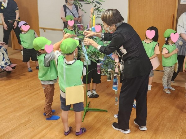 七夕が近いので七夕の飾りや短冊をもってきてくれました。