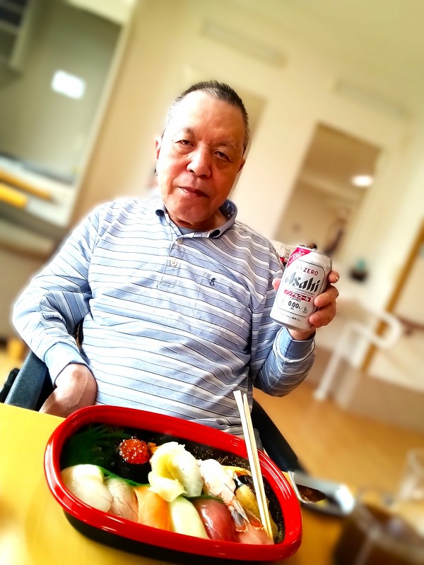★☆Happy Birthdayハッピーバースデー☆S・S様の誕生日会‼銀朱・高級特選握り寿司・ビール乾杯♬2025年令和7年✨ 『みんなの家 三橋6丁目 介護ブログ』☆★