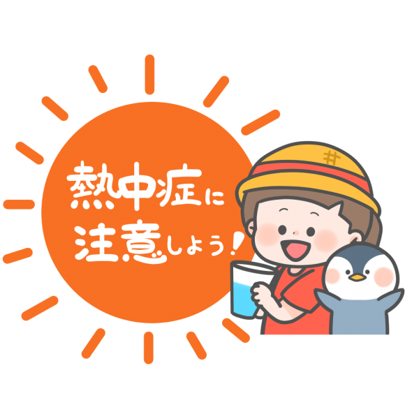 服装を工夫する他、水分や休憩を十分とって体を守りましょう。