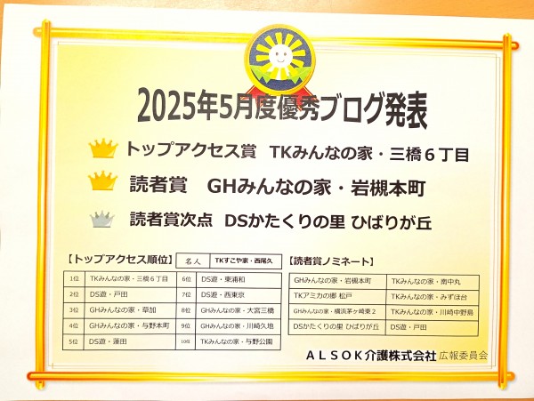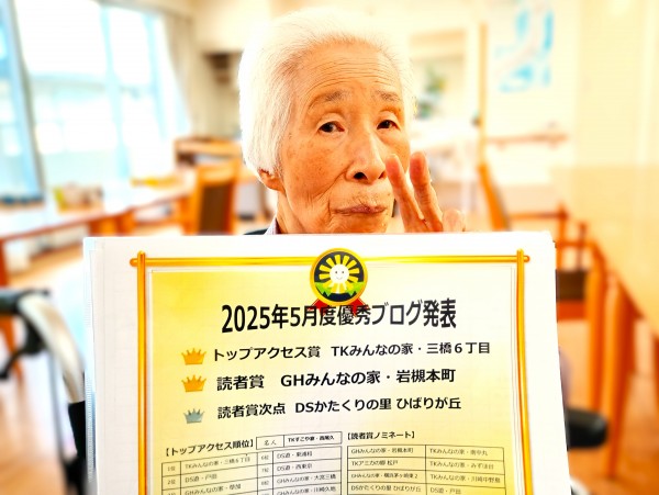 ★☆三橋6丁目のブログが『トップアクセス賞 』表彰‼5月度優秀ブログ発表‼2025年令和7年✨ 『みんなの家 三橋6丁目 介護ブログ』☆★