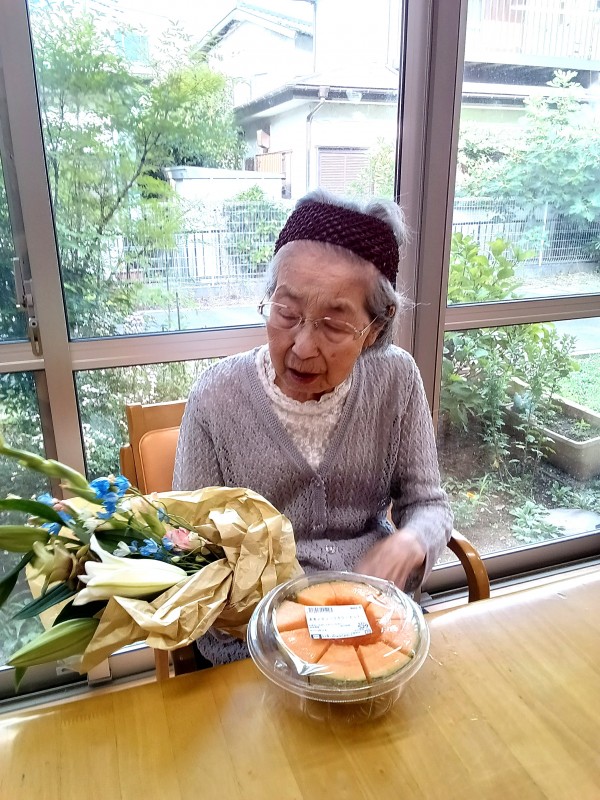 まあ~綺麗なお花だこと? 美味しいメロンもあるの? 大喜びでした(^0_0^) おやつに召し上がられました(*^_^*)