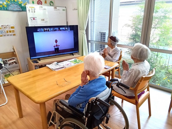 リモート体操:口腔ヨガプログラムを行っています( ^ω^)・・・ 静かに手を動かされ体操に参加されております(*^_^*)