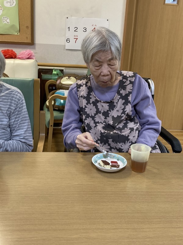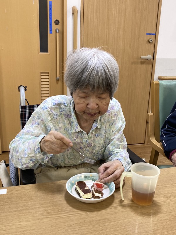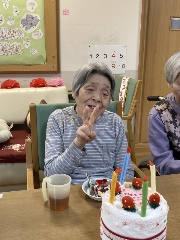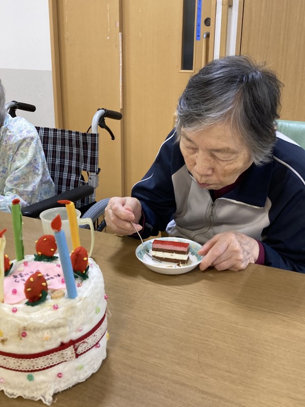 入居者様でバースデイソングを歌って下さり、ケーキを美味しく召し上がりました。