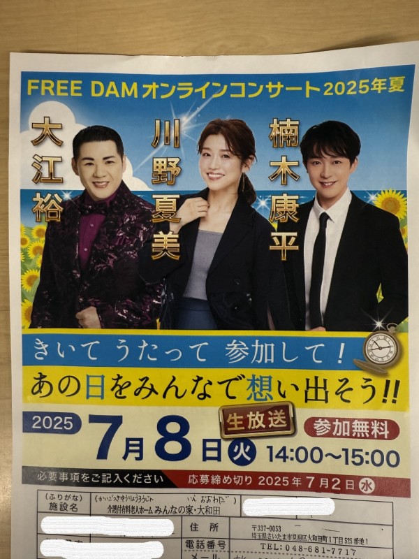 7月8日(火)に初の試みのオンラインコンサートを予定しています。