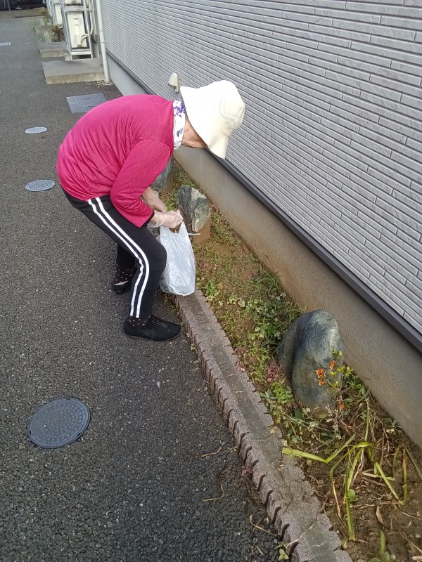 今回は、ホームの玄関回りの草むしりを行いました。