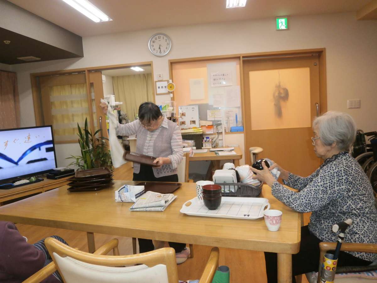 夕食の後はのんびり後片付け。