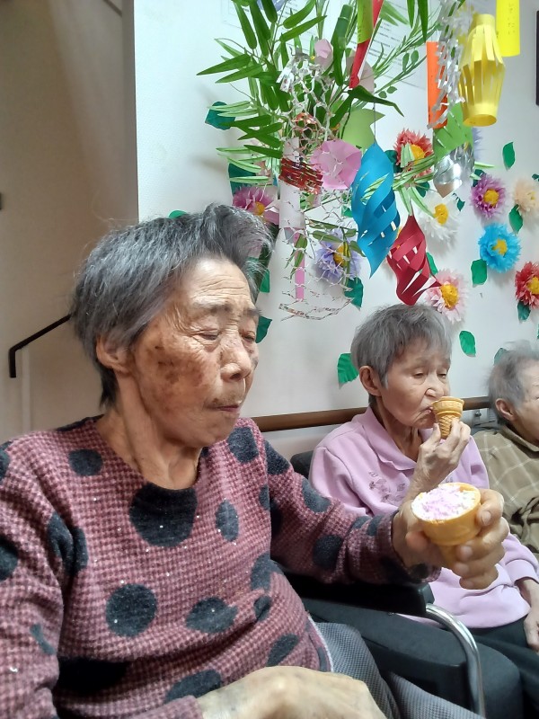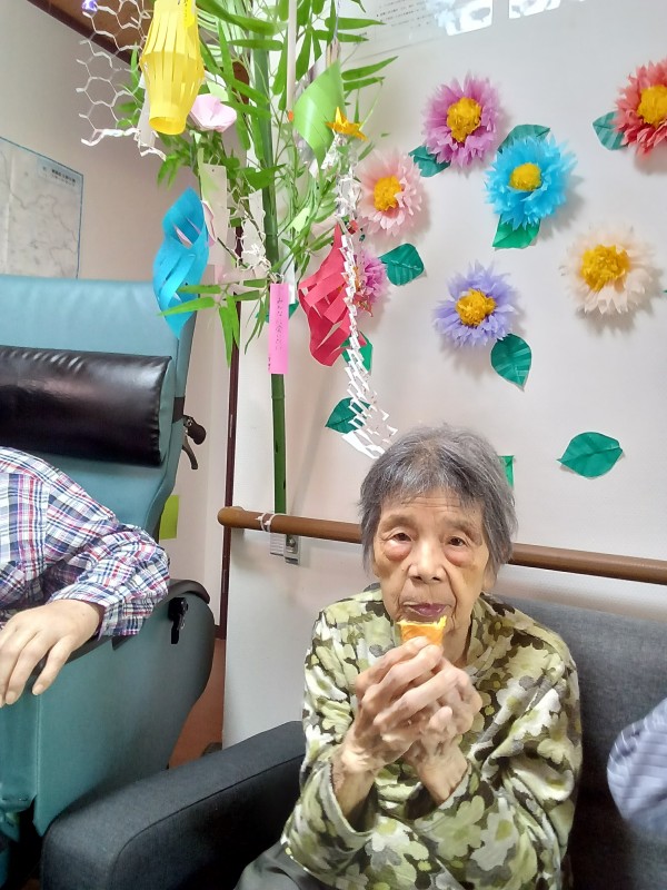 遅ればせながら七夕飾りの前で写真を撮らせていただきましたが、皆様とても美味しそうに召し上がられていました