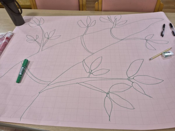 こちらに利用者様がこつこつとちぎり絵をしてくだり、