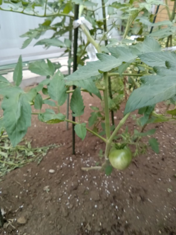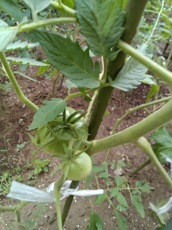 早速、畑に行って見ると大きなトマトが実っていました。