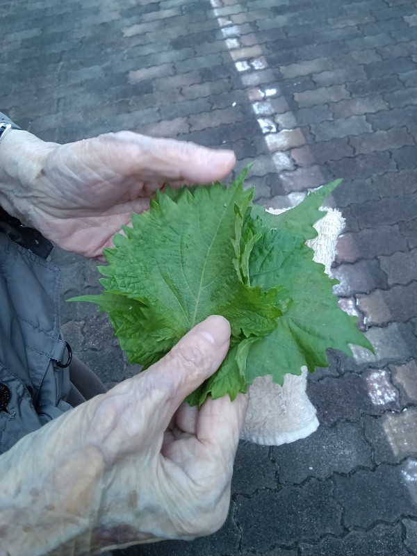 帰り際に大葉を摘んで夕食のサラダと一緒に提供致しました。