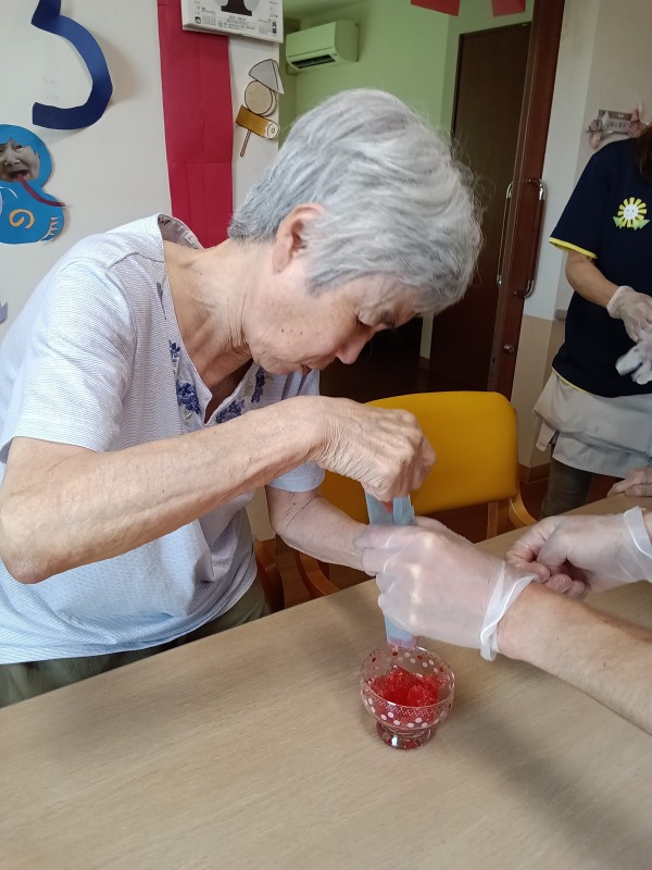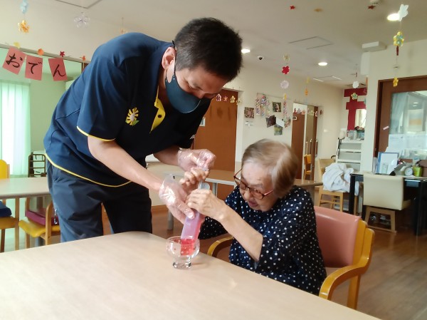 今日は七夕イベントとして皆様に天の川をイメージしておやつを作ってもらいましたので