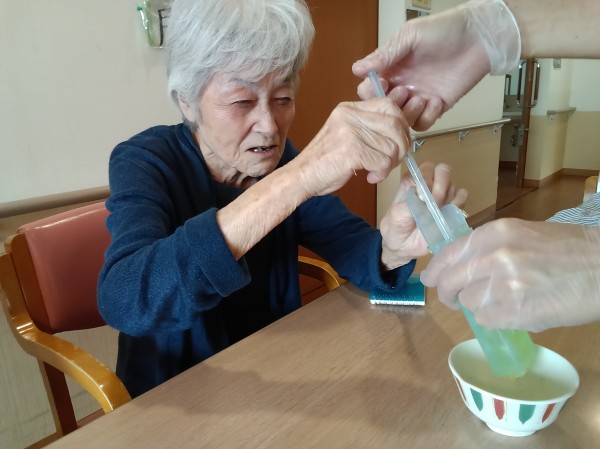 ゼリーが細く出てくるので作っているときに皆様から「おー」と声があがったり
